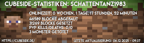 Auf Cubeside baue ich mit Norrittt zusammen eine Stadt auf, die in der Nähe des ehemaligen Spawn der Classikwelt liegt. Da Norrittt aber bisher nur im Untergrund gebaut hat, sind momentan noch alle Gebäude von mir, wer auch in der Classikwelt baut und Hilfe, einen Handelspartner oder ähnliches benötigt, kann sich gerne bei mir melden, beiße niemanden. Bin regelmäßig in Discord online, da meine Sicherheitssoftware und auch meine (zu gegebener Maßen nicht übermäßige, aber ausreichende) IT-Kenntnis mir sagt, das TS ziemliche Sicherheitslücken aufweist, wie zum Beispiel das einfache Herausfinden der IP, die Möglichkeit über TS die Firewall von Nutzer zu um gehen.